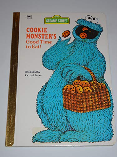 Cookie Monster learns that the morning is a good time to eat breakfast midday to eat a picnic lunch afternoon to eat a snack evening to eat dinner and any time to eat cookies. On board pages.