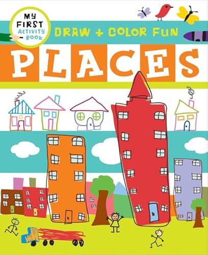 In Places houses rooms and animal habitats are featured. Some pages show places that are partially completed (such as a kids bedroom) and left for the child to fill in and in others light direction is given to help the child make his or her own creation. The sequence of activities moves from home (inside and out) to neighborhood places and then further afield--a house for a bird a rabbit a horse a car a fire engine etc. Throughout artistic license rules!